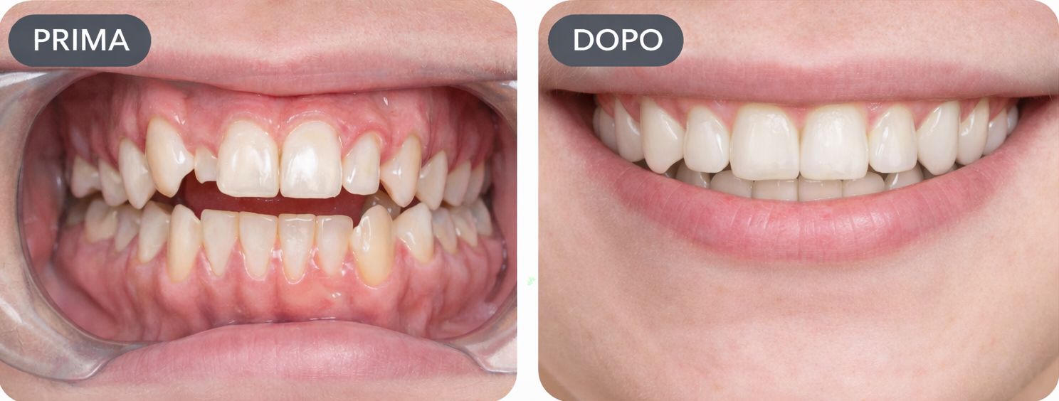 Malocclusione dentale di seconda classe a destra e a sinistra.