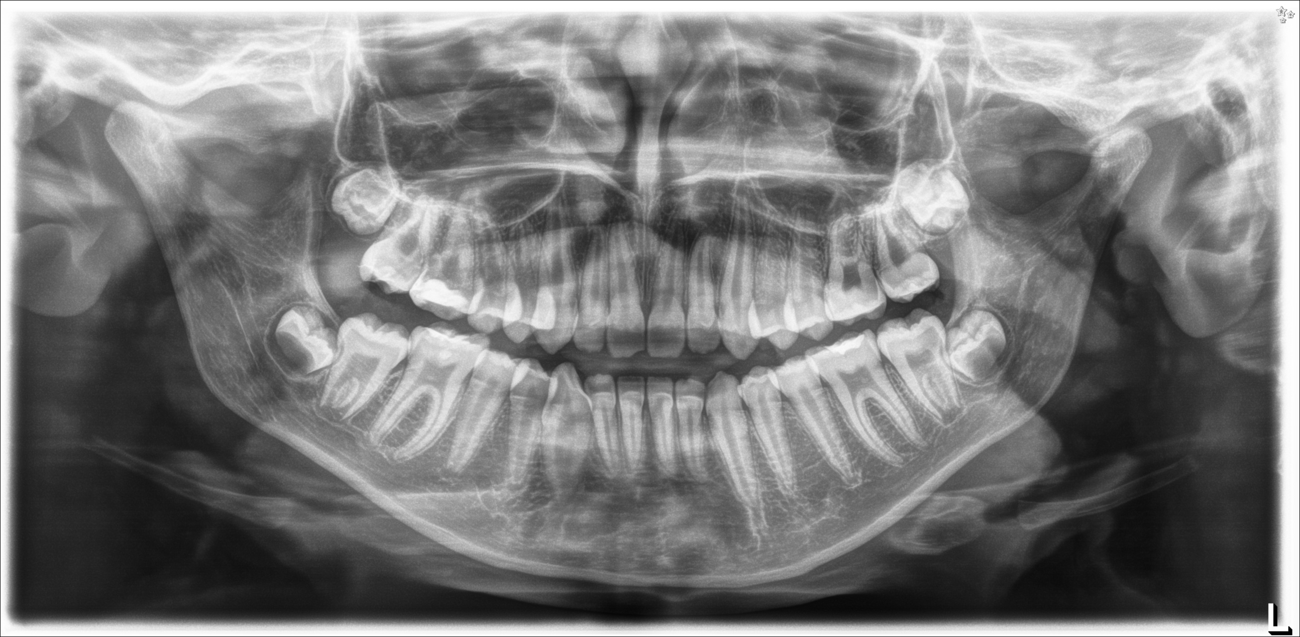 Sono presenti tutti i denti, compresi i germi dei denti del giudizio.